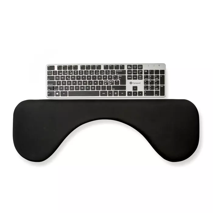 Underarmstøtten passer meget godt sammen med både våre ergonomiske datamus, vårt tastatur og tilsvarende produktløsninger fra andre produsenter i markedet. Produktet er av god kvalitet med underside i stål som gjør at den ligger stabilt på bordplaten. Underarmstøtten passer til skrivebord med både rett og buet form samt at den har et enkelt feste uten å måtte skru i bordplaten. Underarmstøttens festebraketter bygger ned kun 57 mm. Festebrakettene monteres direkte i støttens underside i stål med medfølgende unbrako-skruer. Festebrakettene er utstyrt med skruer slik at underarmstøtten kan klemmes fast på bordplaten, samt skruer for å kunne vinkle underarmstøtten i rett posisjon. Underarmstøtten har en vaskbar overflate.